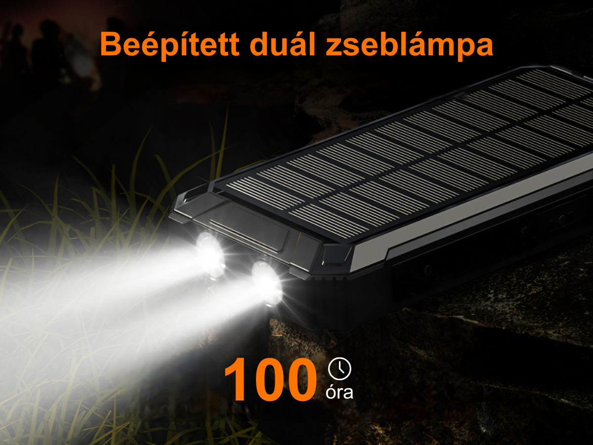 Ez a power bank nemcsak a készülékeid töltésében rugalmas, hanem a saját töltése terén is rendkívül praktikus. Tölthető USB és USB-C csatlakozón keresztül is, így szinte bármilyen elérhető töltővel könnyedén újratölthető, emellett beépített napelemmel is rendelkezik. Nem kell többé azon aggódnod, hogy nincs kéznél kompatibilis töltő, ez a power bank mindig készen áll az energiára. A sokoldalú töltési lehetőségek maximális kényelmet és szabadságot biztosítanak bárhol is jársz.