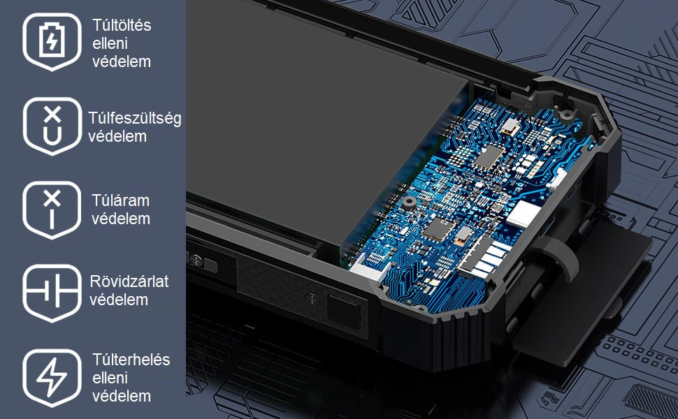 A NOXX power bank a mai kor elvárásainak és a modern elektronikai szabványoknak megfelelő biztonsági védelemmel van ellátva, így gondoskodik készülékeid védelméről. Legyen szó otthoni használatról vagy útközbeni töltésről, megbízható társad lesz a mindennapokban.